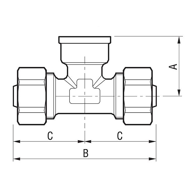 Фитинг Т-образный 16х1/2х16 с внутренней резбой - F.I.V."