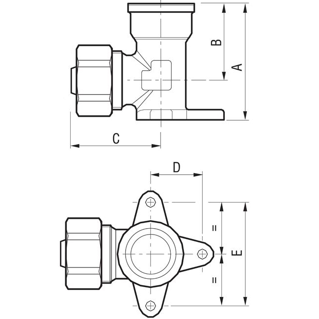 Размеры (A, B, C, D, E) ,мм: 40, 27, 35, 17, 34.