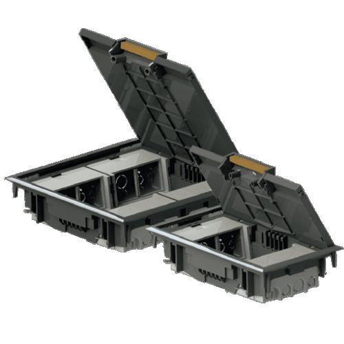 Напольная коробка на 8 постов 16 модулей со стальной пластиной для бетонных и фальш-полов.