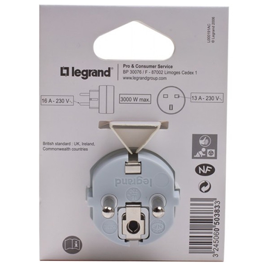 Переходник с британского стандарта на французский/немецкий стандарт.