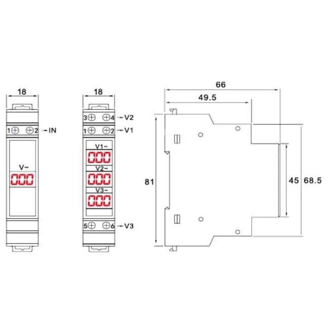 Цифровой вольтметр однофазный NV-1P на DIN-рейку - GEYA