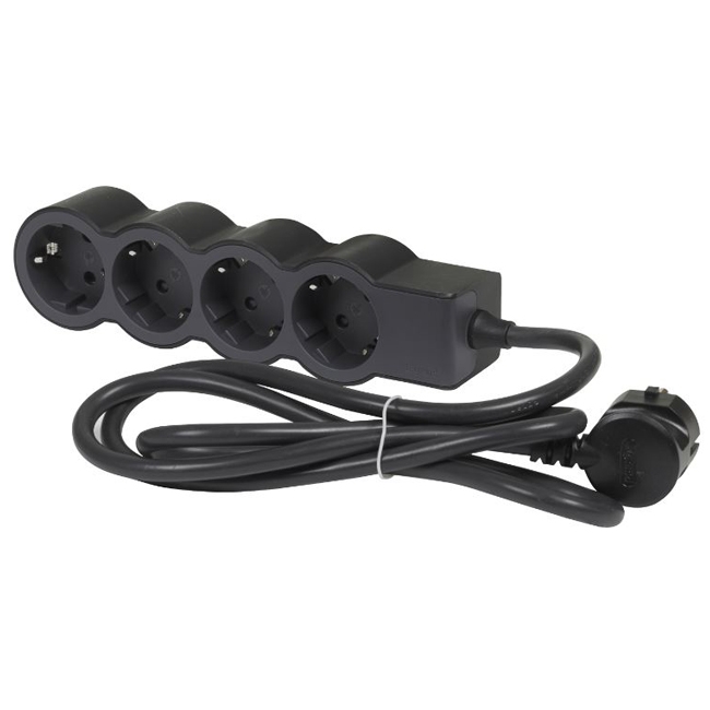 Многорозеточный блок ''Стандарт'' 4 x 2К+З - с кабелем длиной 5 м - черный