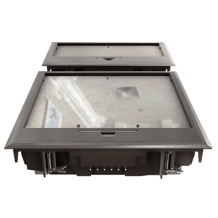 Напольная коробка на 8 постов 16 модулей со стальной пластиной для бетонных и фальш-полов.